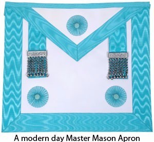 Modern Masons wear an embroidered lambskin apron to distinguish rank. As the Mason’s proficiency increases, the design of his apron becomes more ornate.
