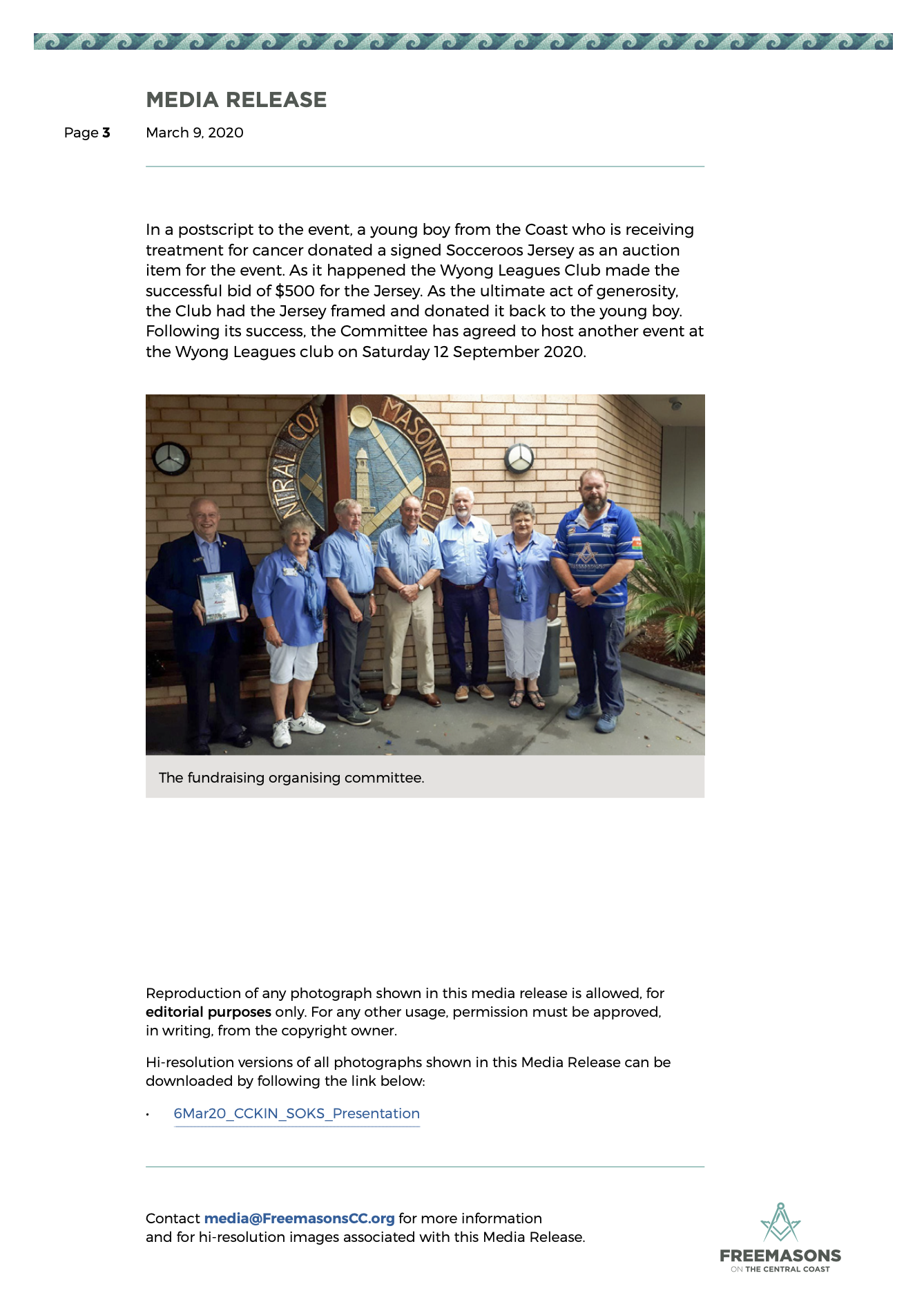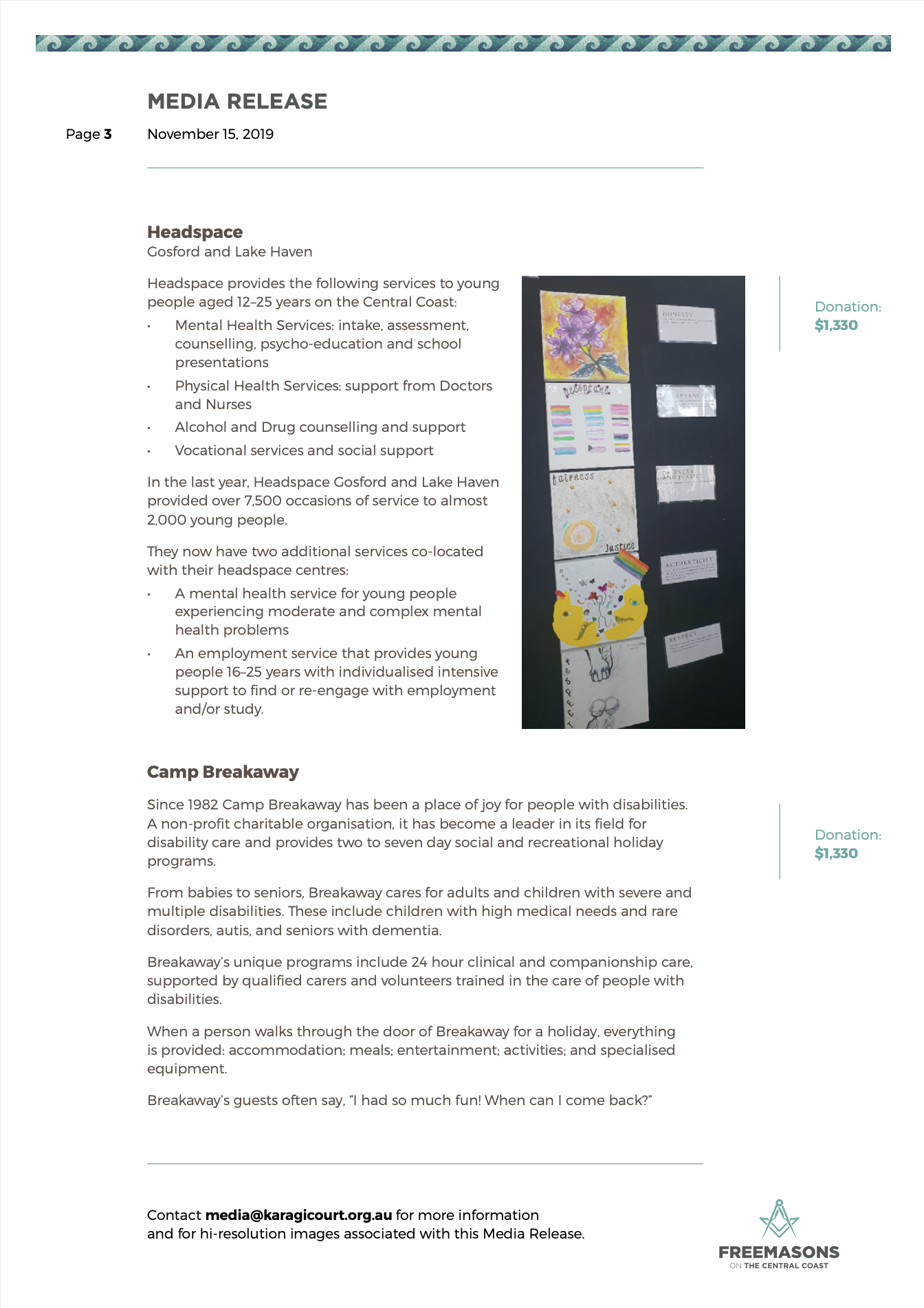 The Freemasons on the Central Coast have been able over the past few years been able to supply guernseys, travel bags and water bottles to assist. On Friday 29th March, this year the Freemasons were able to continue this assistance.
