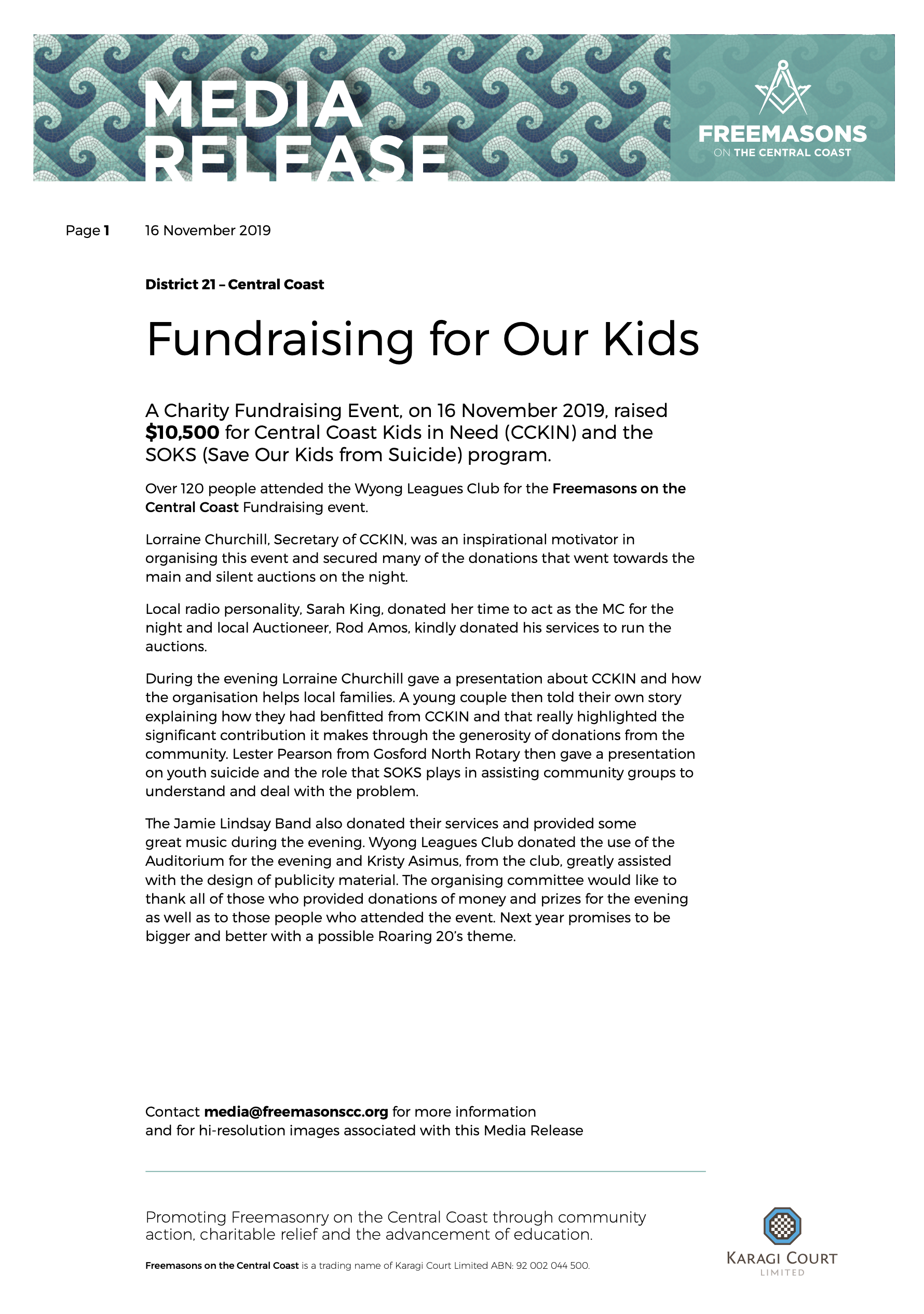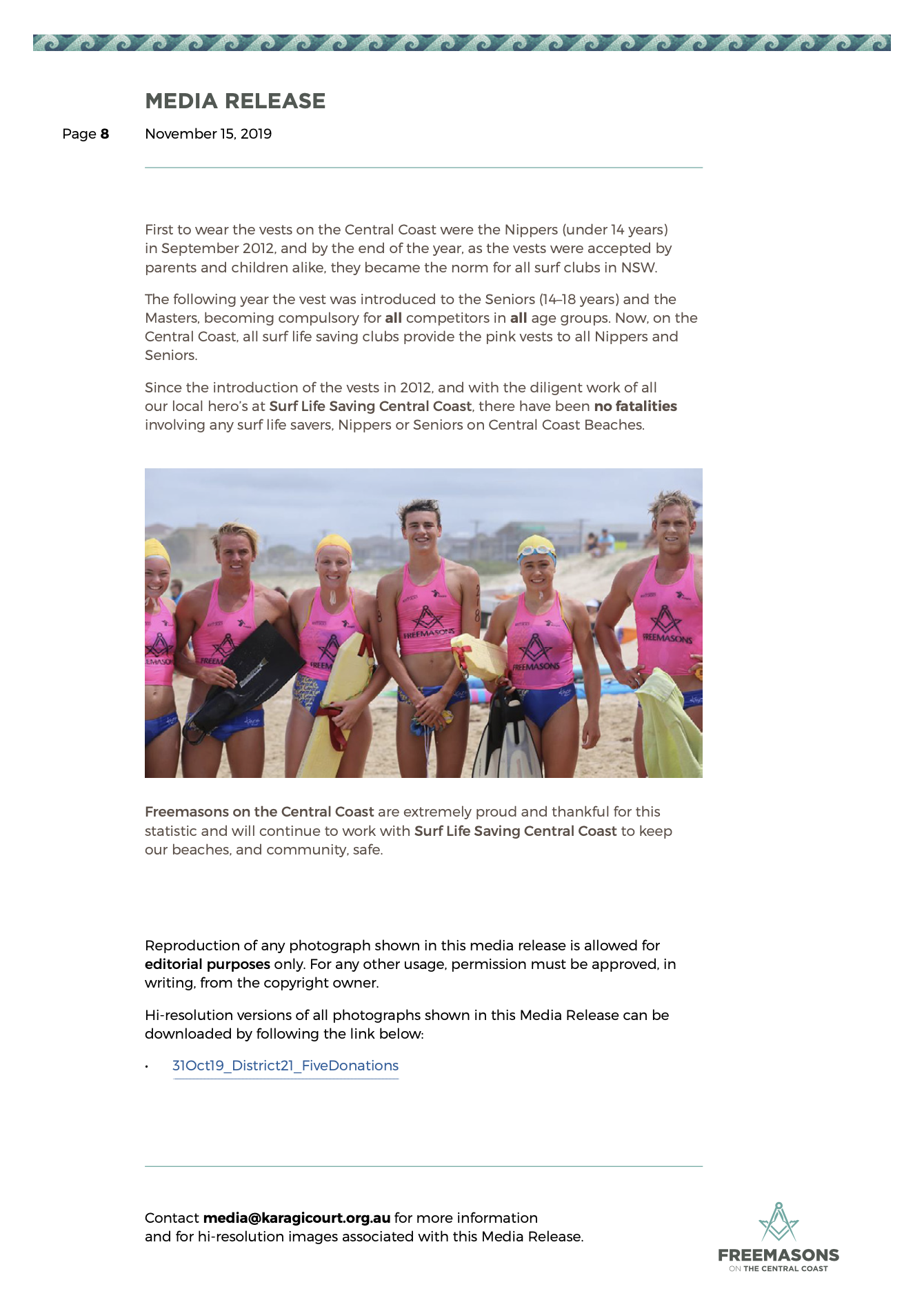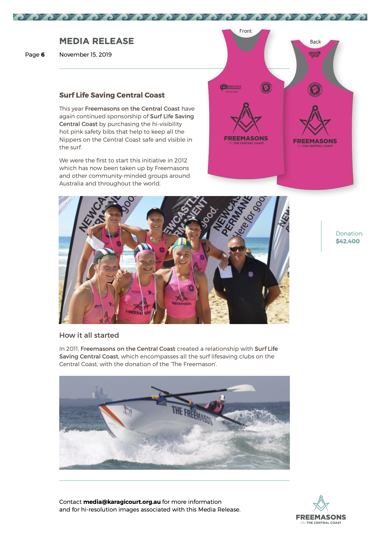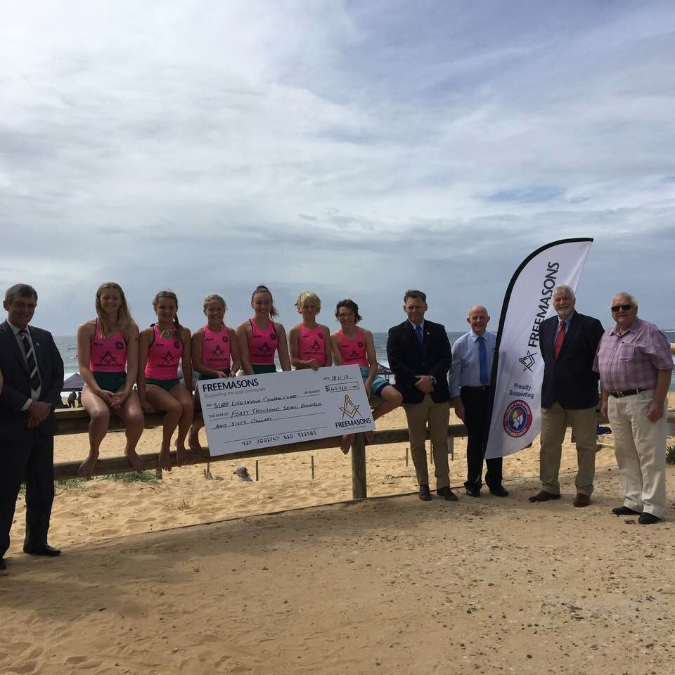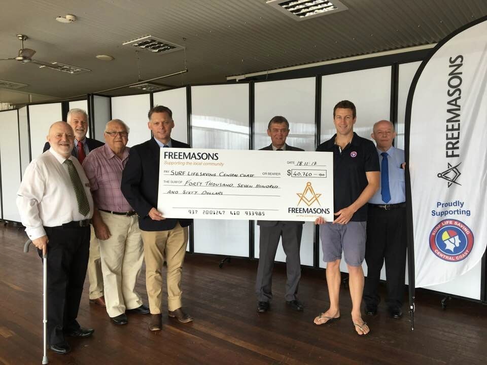 Saturday 18th November 2017 saw the Freemasons on the Central Coast present a cheque to Surf Life Saving Central Coast to the value of $40,760. This vital funding will continue to assist us in maintaining the safety of our Nippers from all 15 surf clubs on the coast by continuing to wear high visibility vests whilst in the surf....