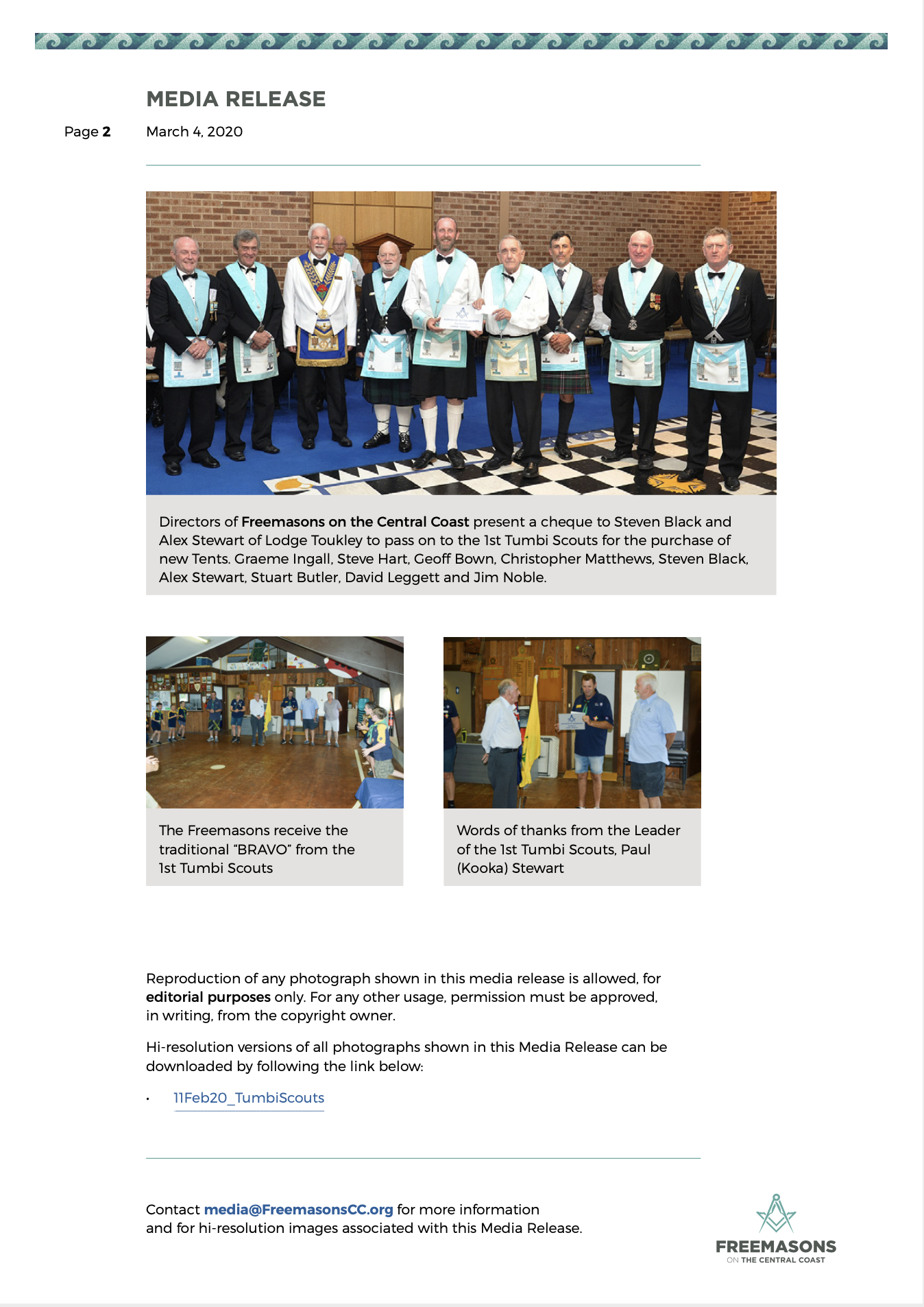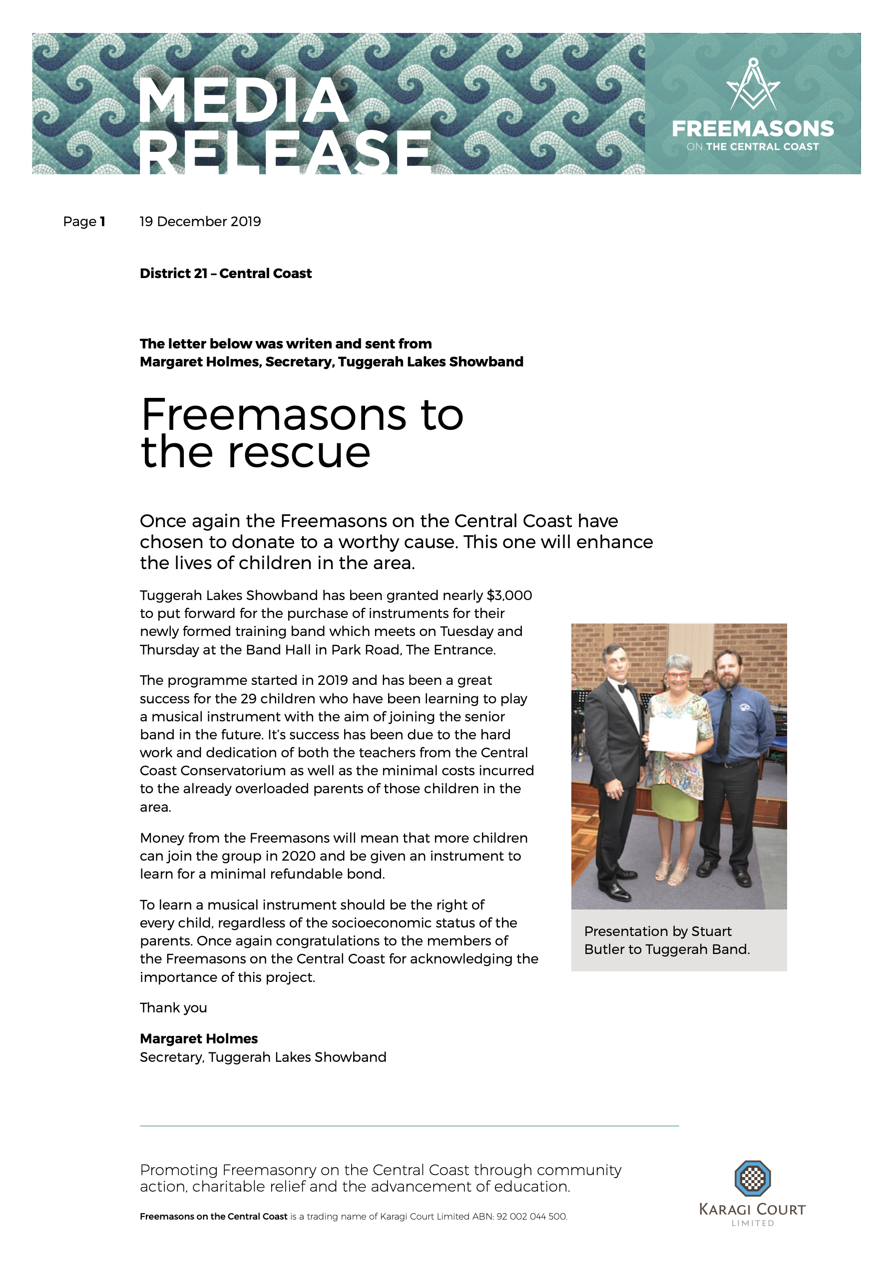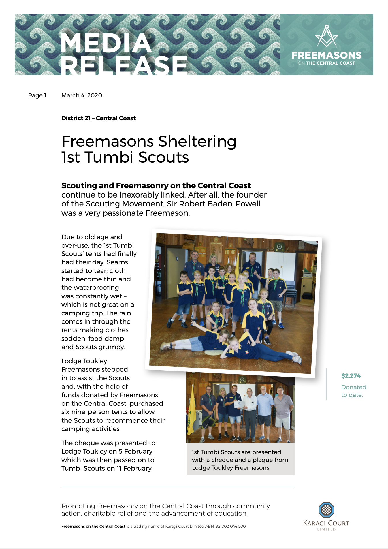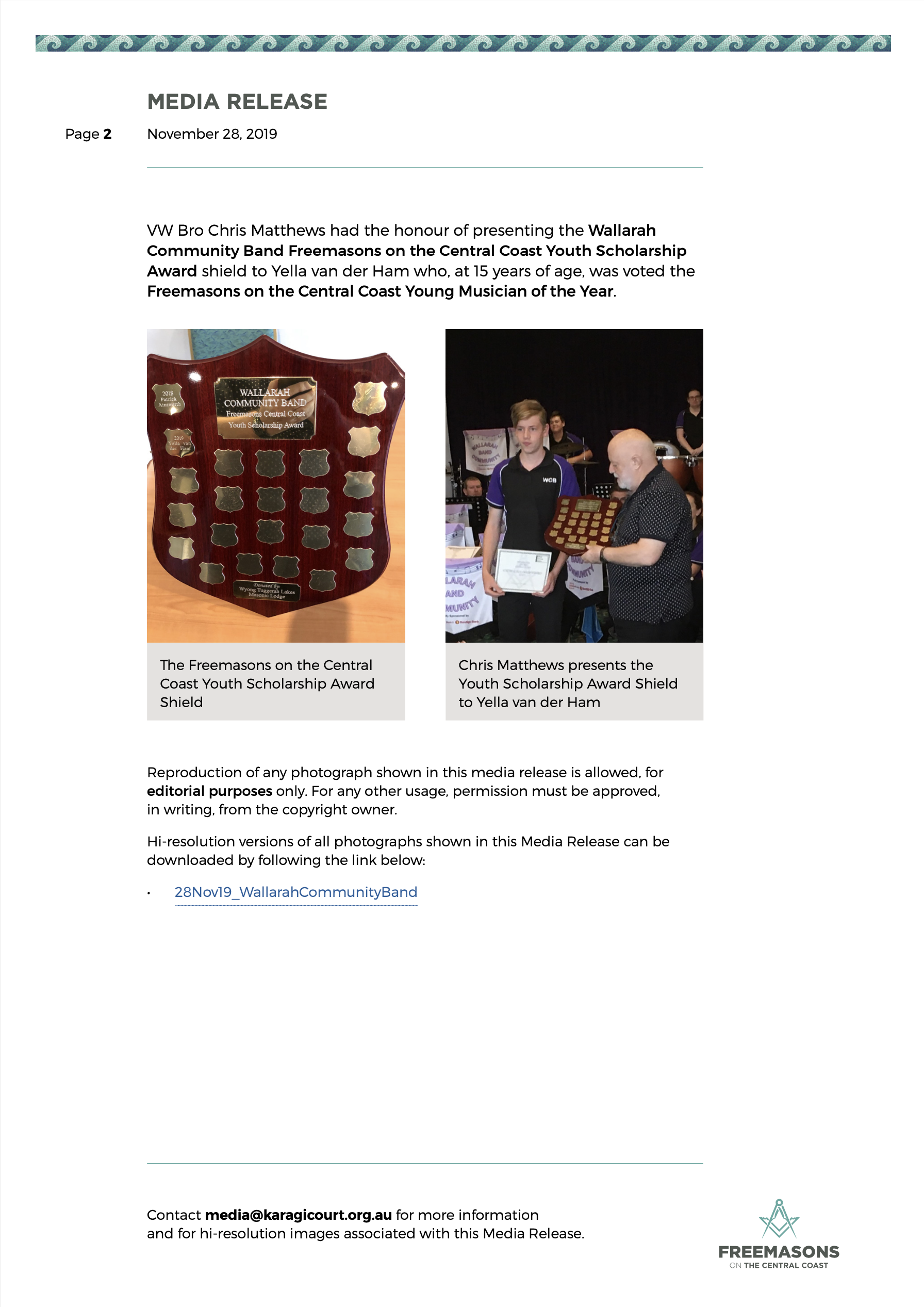 I thought I would forward this on so that you can share this with your fellow members at Freemasons on the Central Coast as I am sure you are proud as we are of his achievements.